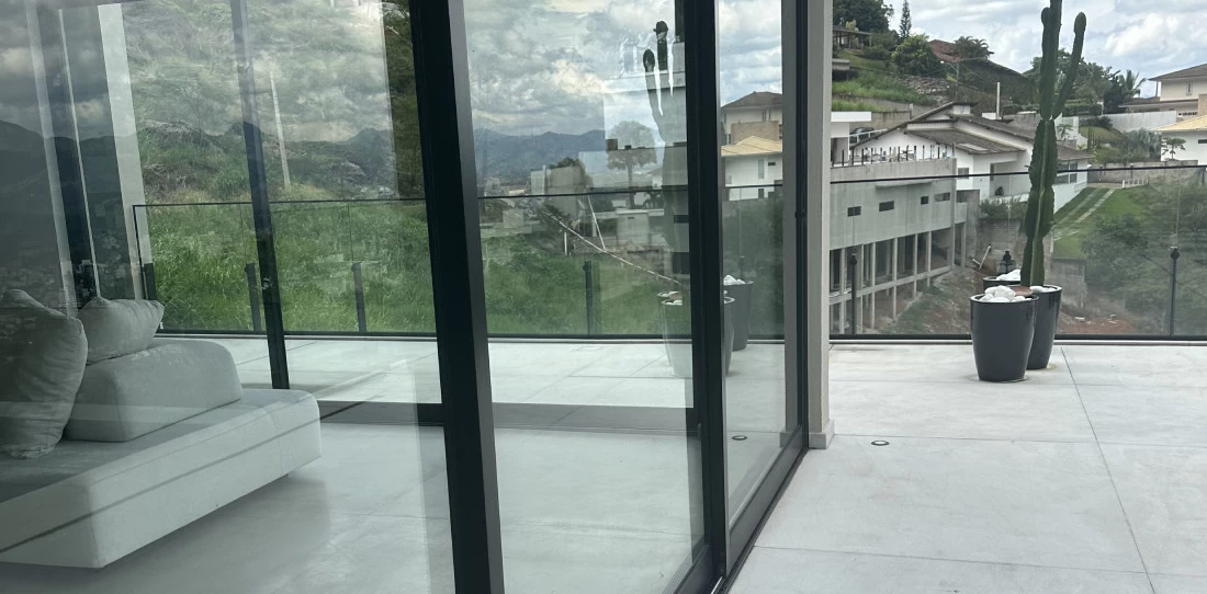 Nesta casa tivemos o prazer de realizar uma entrega completa. Foram executadas todas as esquadrias de alumínio, desde quadros fixos, portas e janelas de correr no sistema Chroma.